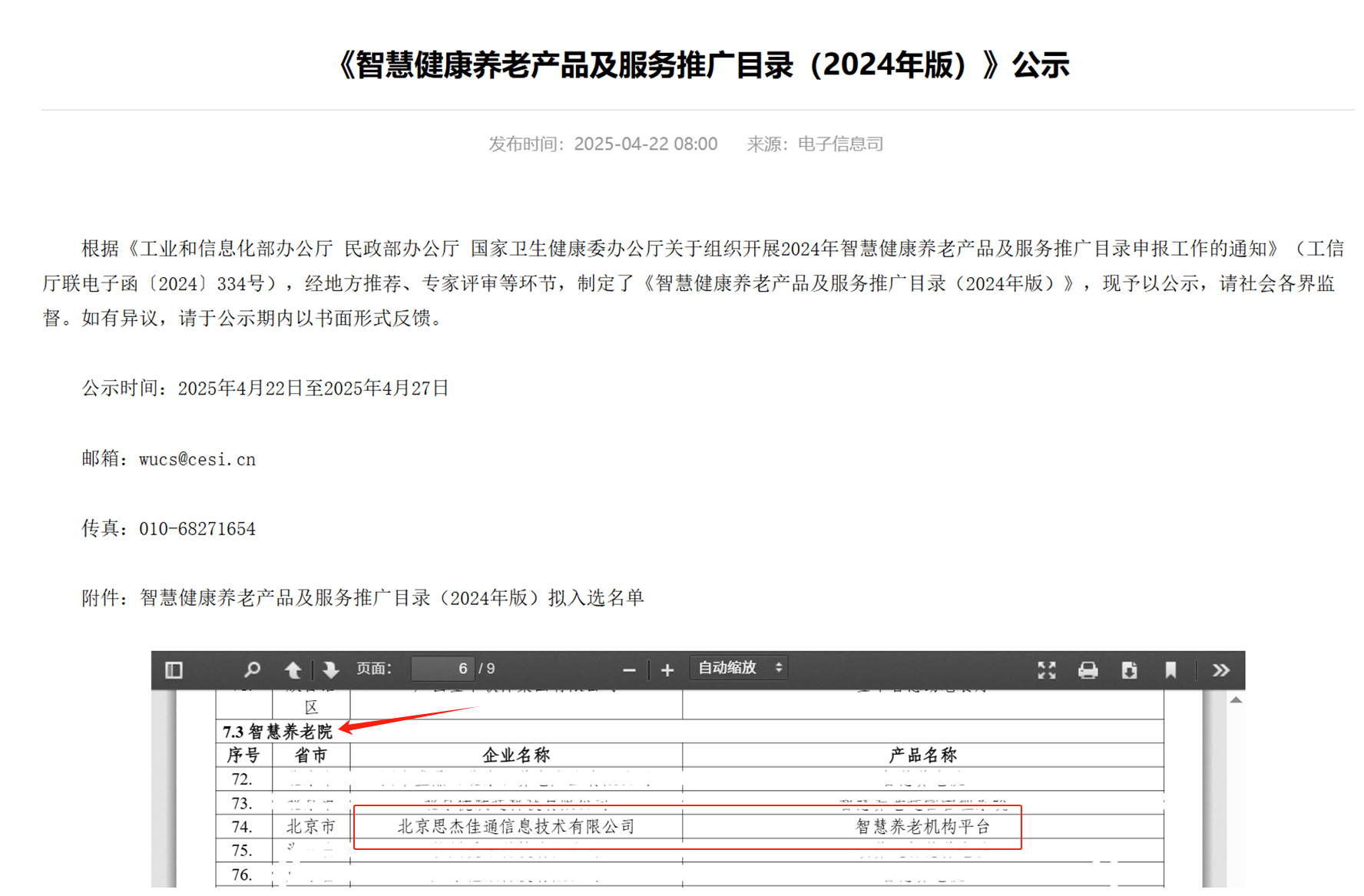 杰佳通智慧養老院平臺平臺入選國家三部委《智慧健康養老產品及服務推廣目錄(2024年版)》